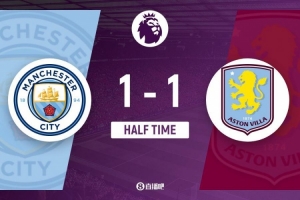 体育资讯4月23日讯 北京时间3:00,英超第34轮曼城vs阿斯顿维拉,比赛在伊蒂哈德球场打响!上半场,拉什福德开场中柱,随后B席破门;迪亚斯送点,拉什福德点射扳平。半场结束,曼城暂1-1维拉。